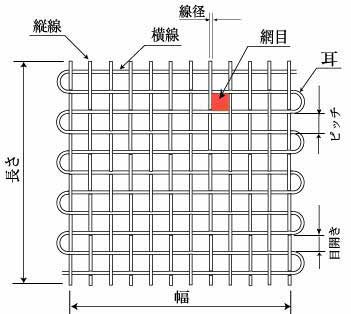メッシュ:25.4mm一辺間にある目数 | |||||||||